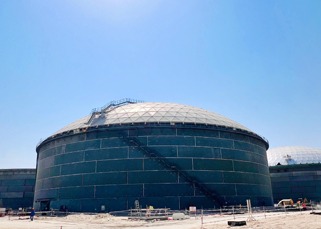 Each tank has a net capacity of 102,300 cu m, with dimensions of 82 m in diameter and 20.4 m in height and features an aluminium dome roof.