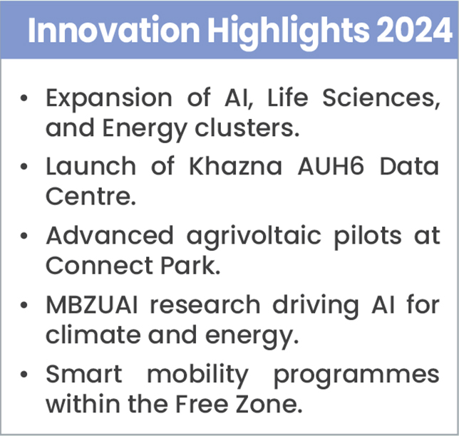 Together, these entities drive innovation across six high-impact clusters: Energy, AI, Agritech, Life Sciences, Smart Mobility, and Space-Tech, making the city a cornerstone of the UAE’s Falcon Economy and a global hub for sustainable technology.