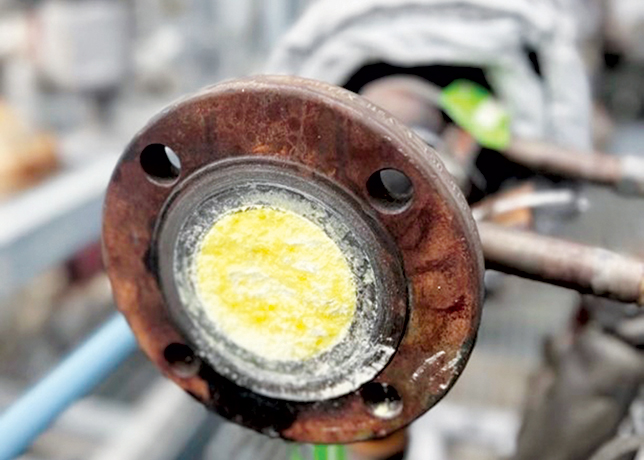 However, as the sulphur disperses in the vapour space, it can form a residue on equipment and instrumentation such as free space radar cones, guided wave radar rods, thermowells and ultrasonic flowmeter probes.