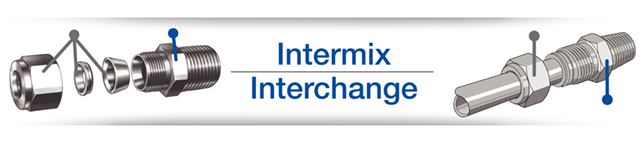 Intermix occurs when tube fitting components (such as nuts, ferrules, and bodies) from two or more manufacturers are mixed to assemble a single fitting.