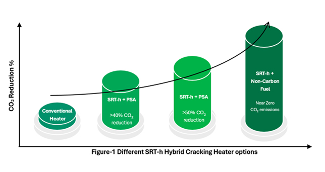 The SRT-h Hybrid Cracking Heater can be implemented in phases, starting with partial CO2 emission reduction and later progressing toward near-zero emissions when combined with non-carbon fuel firing solutions (Figure 1).