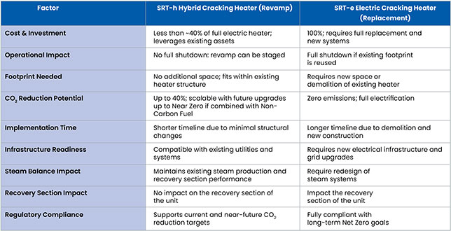 Table 2 ... a comparison of capex, infrastructure, and CO2 reduction potential between the SRT-h and SRT-e cracking heaters