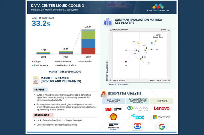 The "Data Centre Liquid Cooling Market" report by MarketsandMarkets estimates the market will grow from $2.84 billion in 2025 to $21.14 billion by 2032, reflecting a CAGR of 33.2 per cent.