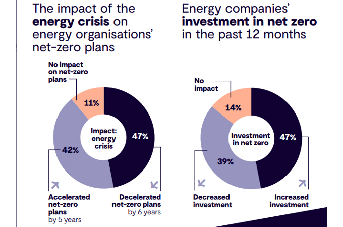 The climate shock continues to force an acceleration of the energy transition, but progress towards net zero is being impacted by the complex dynamics at play. While 42 percent say the current energy crisis has accelerated their organisation’s net-zero plans – by an average of five years – almost half of energy leaders (47 percent) state that the crisis has decelerated their net-zero plans – by an average of six years.