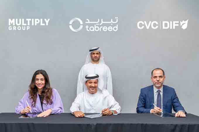 The agreement was signed by Samia Bouazza, Group CEO and Managing Director of Multiply Group, Khalid Al Marzooqi, Chief Executive Officer of Tabreed and Özgür Önder, Head of CVC Middle East.