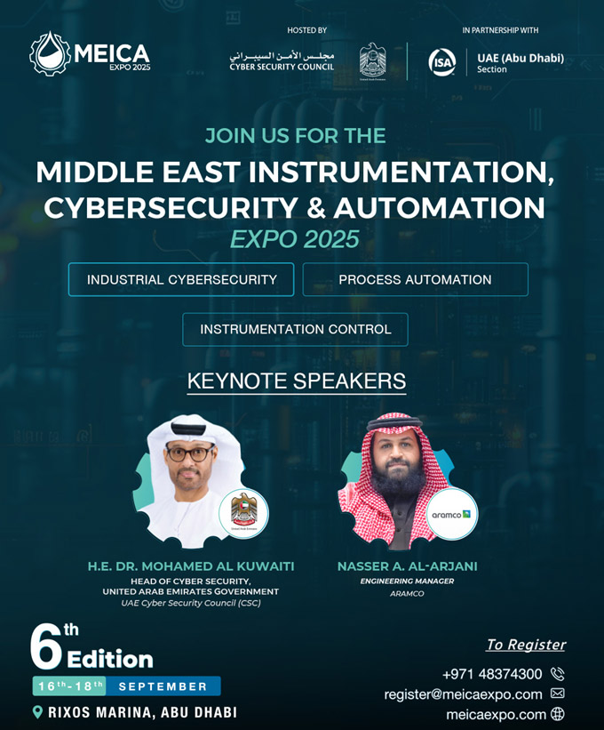 The 6th Middle East Instrumentation Cybersecurity and Automation Expo (MEICA EXPO 2025) will convene global experts, technology providers, and industry leaders to explore advancements in instrumentation control, process automation, and industrial cybersecurity this month.